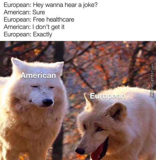 European: Hey Wanna Hear A Joke? American: Sure European: Free…