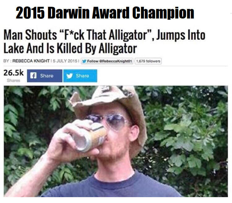 2015 Darwin Award Champion Man Shouts “F*ck That Alligator”,…