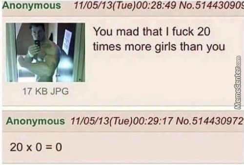 Anonymous You Mad That I Fuck 20 Times More Girls…