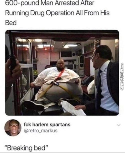 600-pound Man Arrested Running Drug Operation All From His… meme