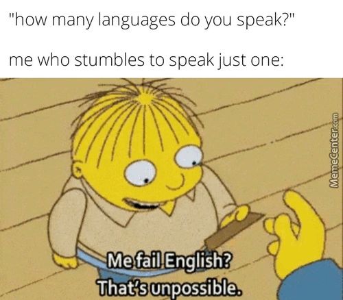“how Many Languages Do You Speak?” Me Who Stumbles To… In: m2. “how Many Languages Do You Speak?” Me Who Stumbles To Speak Just One: That’s Unpossible. Killer jokes and comics on ComicsGoneBad. Must see. Memes and stuff! << Prev m2 Next >>