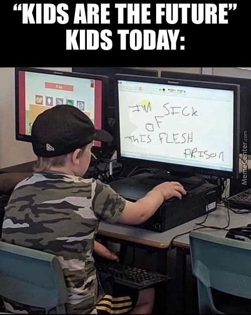 “KIDS ARE THE FUTURE” KIDS TODAY: meme In: m2. “KIDS ARE THE FUTURE” KIDS TODAY: Killer jokes and comics on ComicsGoneBad. Must see. Memes and stuff! << Prev m2 Next >>
