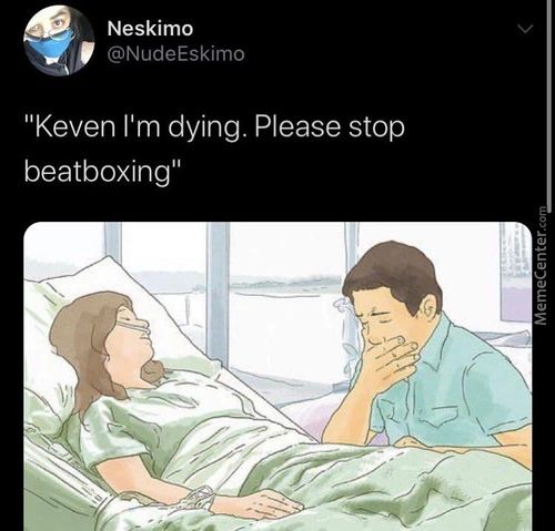 Neskimo @NudeEskimo “Keven I’m Dying. Please Stop Beatboxing” In: m2. Neskimo @NudeEskimo “Keven I’m Dying. Please Stop Beatboxing” Killer jokes and comics on ComicsGoneBad. Must see. Memes and stuff! << Prev m2 Next >>