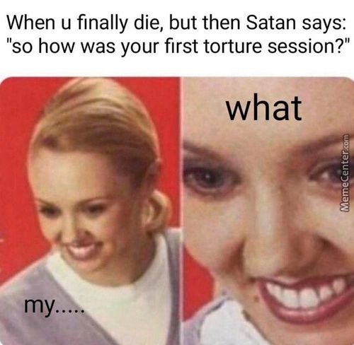 When U Finally Die, But Then Satan Says: “so… In: m2. When U Finally Die, But Then Satan Says: “so How Was Your First Torture Session?” What My… Killer jokes and comics on ComicsGoneBad. Must see. Memes and stuff! << Prev m2 Next >>